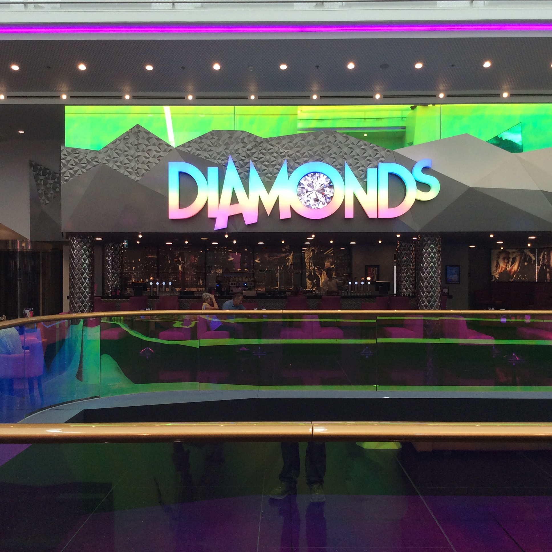 Mit SP-Flex oder SP-Face LED Panels hinterleuchtete Großflächen an den Wänden oder an den Decken können mit beliebigen Motiven bedruckt werden und ggf. sogar animiert werden.